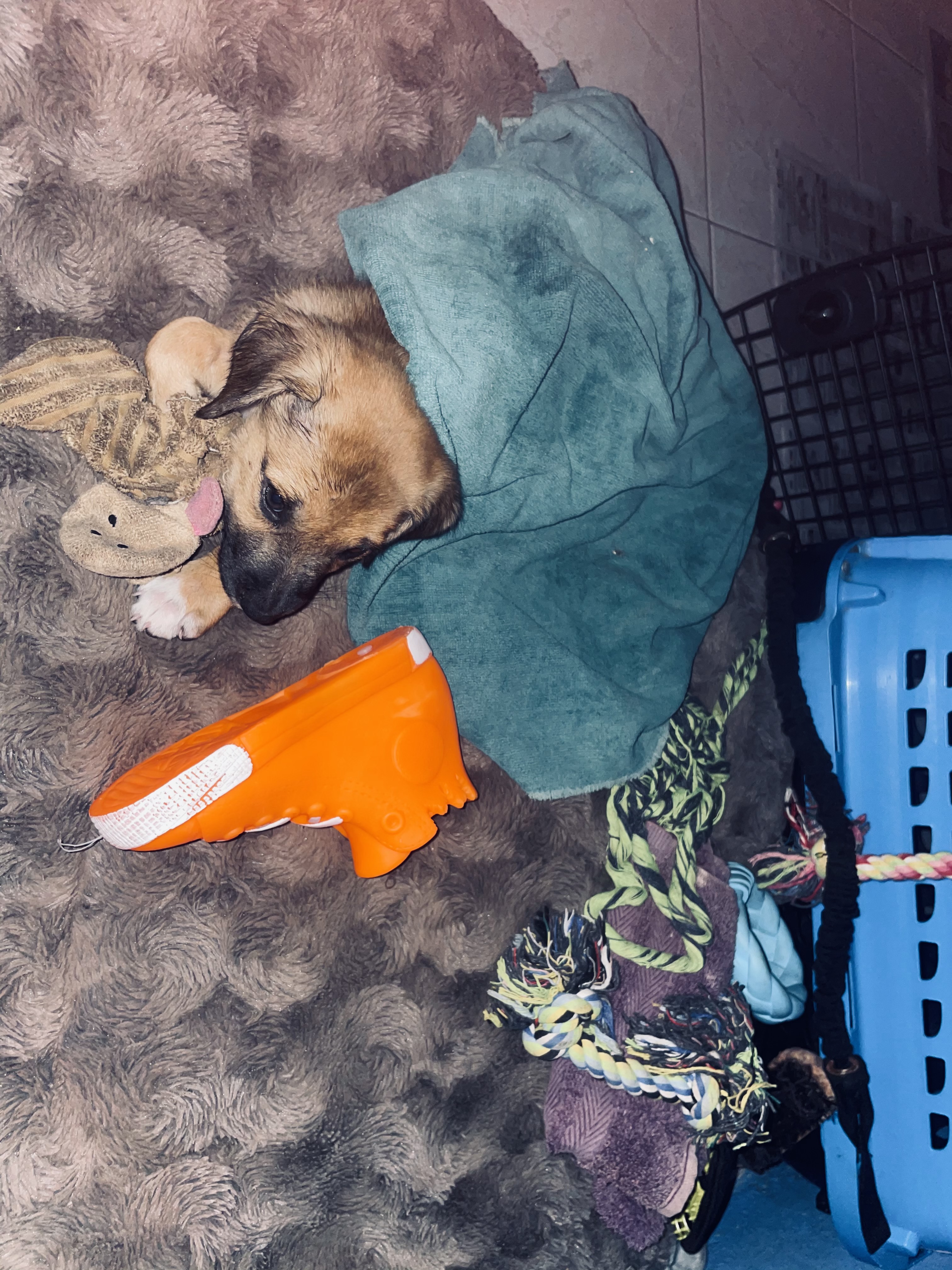 Found this 5 week old baby while waking my pup Zeus. He was about to get eaten by ravage , wild dogs just like his other 6 siblings did.