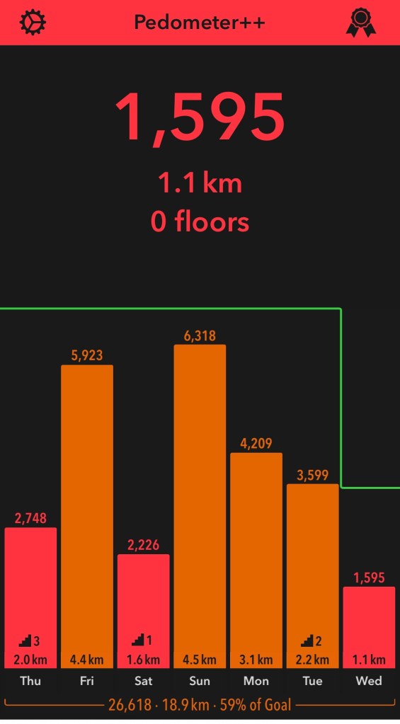 Within the last week, I was able to reach only 59% of the goal set by default, which is 3,500 steps per day .