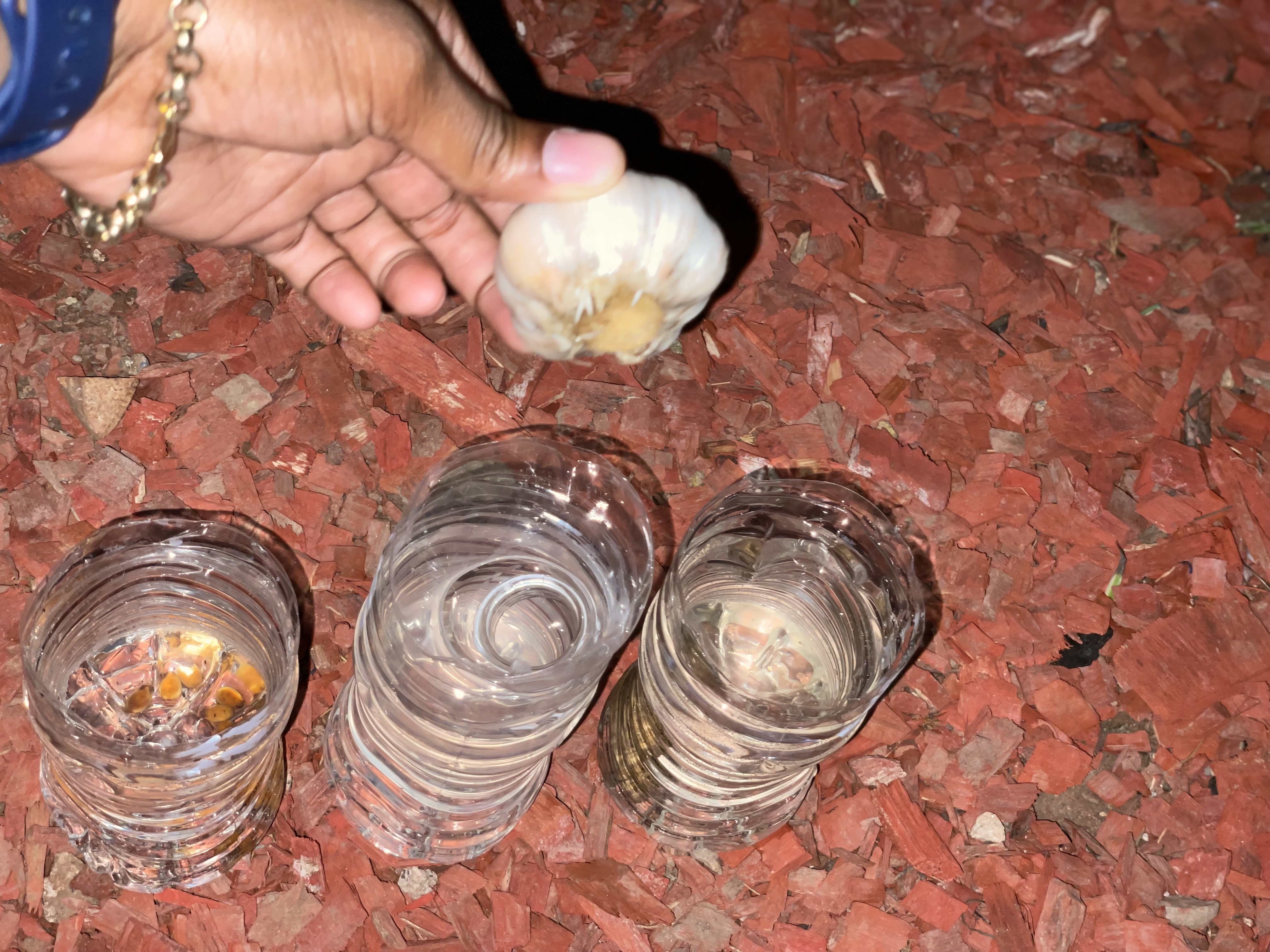 The root of the garlic is starting to sprout